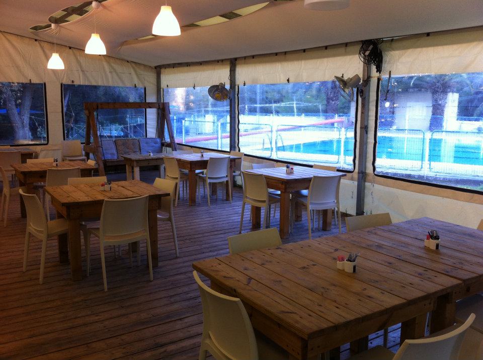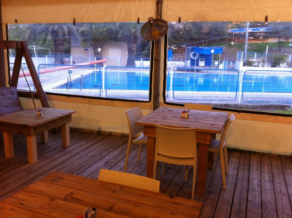 בית הקפה "קפה על המים" פתוח בזמן פעילות הבריכה.